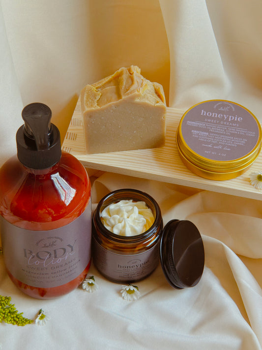 Wrap yourself in calm, warmth, and gentle care with our Soft Season Collection. Designed to nourish your skin and soothe your senses, this collection blends the comforting touch of tallow with the restorative benefits of magnesium and tallow.
